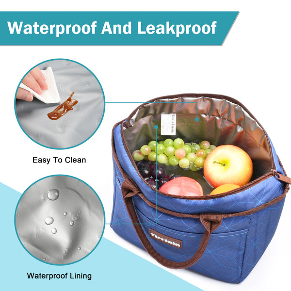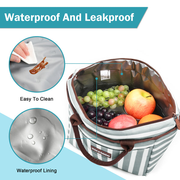 Durable oxford cloth and waterproof aluminum foil( BPA FREE), perfect to pack your food and lunch box. Thickened fabric and PE foam interlayer keep your reusable lunch bag firm and your food cold or warm for about 4 hours.