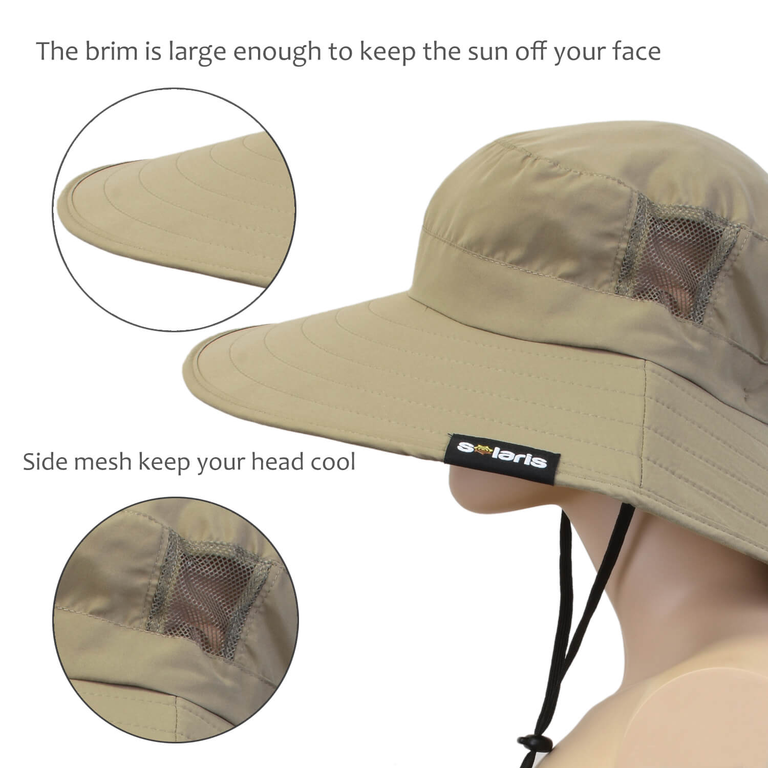 Solaris Outdoor Wide Brim Sun Hats Blocking UV Protection Cap UPF 50+ Foldable Mesh Net for Finishing, Hiking, Camping