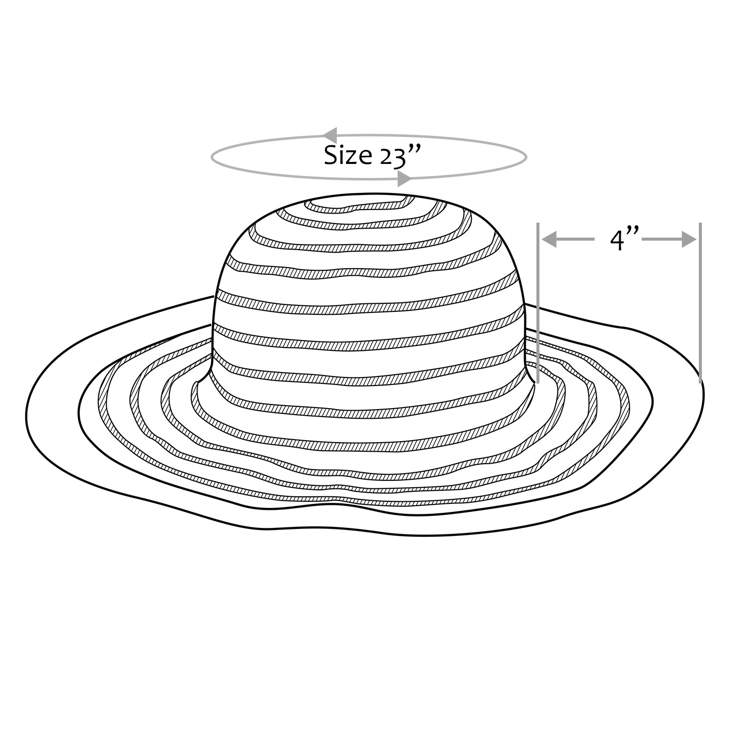 Size: one size fit most womens: head circumference 23", head brim 4"