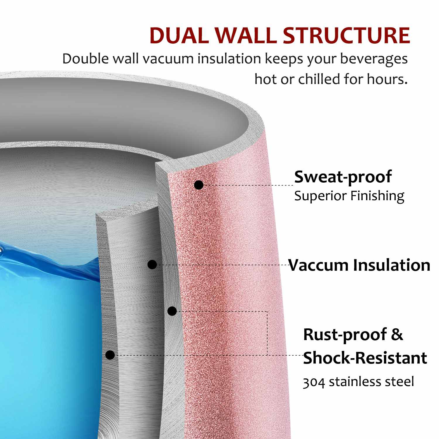 - Hot or Cold for Hours: Double-walled 304 stainless steel with a vacuum gap prevents heat transfer, keeping drinks hot or cold for hours without a sweaty exterior.