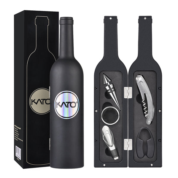 The Kato wine opener set provides everything you need to enjoy your favorite wine, The pretty outer sleeve with Gift package pattern wrapping on the box and the creative wine bottle-shaped case make this a perfect gift choice for any wine lovers in Christmas Day, Thanksgiving Day, housewarming, birthday, holiday, wedding or anniversary.