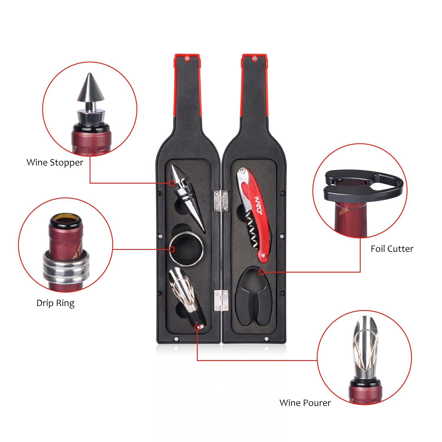 Kato by Tirrinia 5Pcs Wine Bottle Opener Set with Gift Case