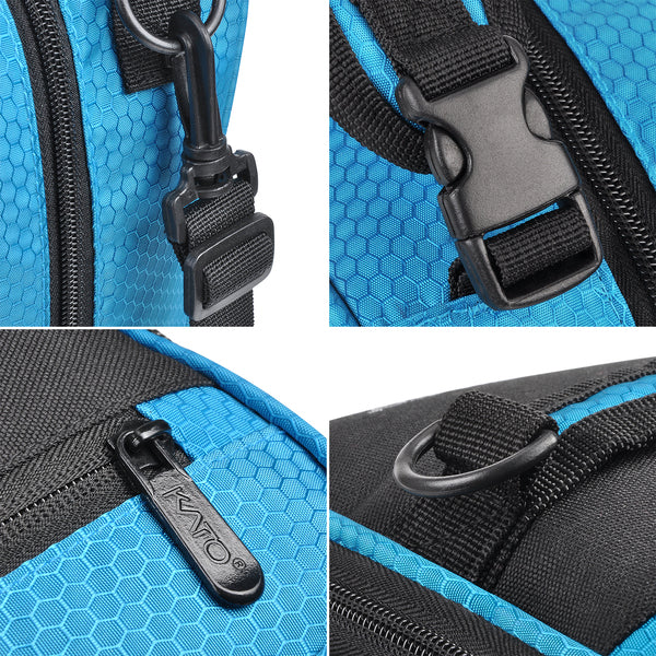 Side-release buckle to attach the bag to backpacks or hooks