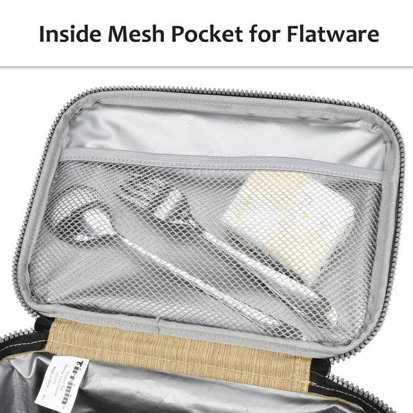 Tirrinia reusable lunch bag has an insulated aluminum foil lining and a PE foam interlayer to keep your food fresh and cold/hot for hours.