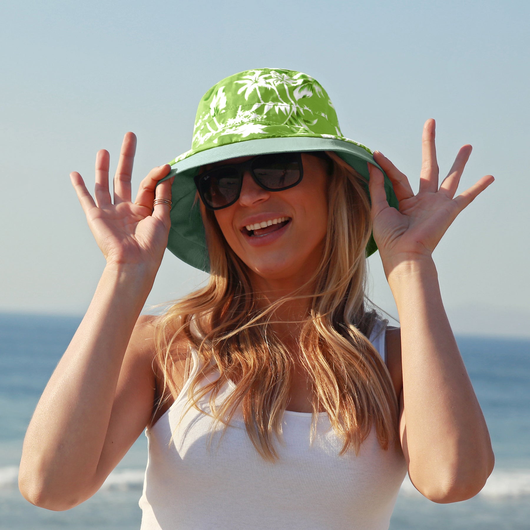 Don't worry, our Sun Blocker wide brim bucket hat not only provide full coverage to shield you from the radiating sun but also make you hit the beach with our unique design hat