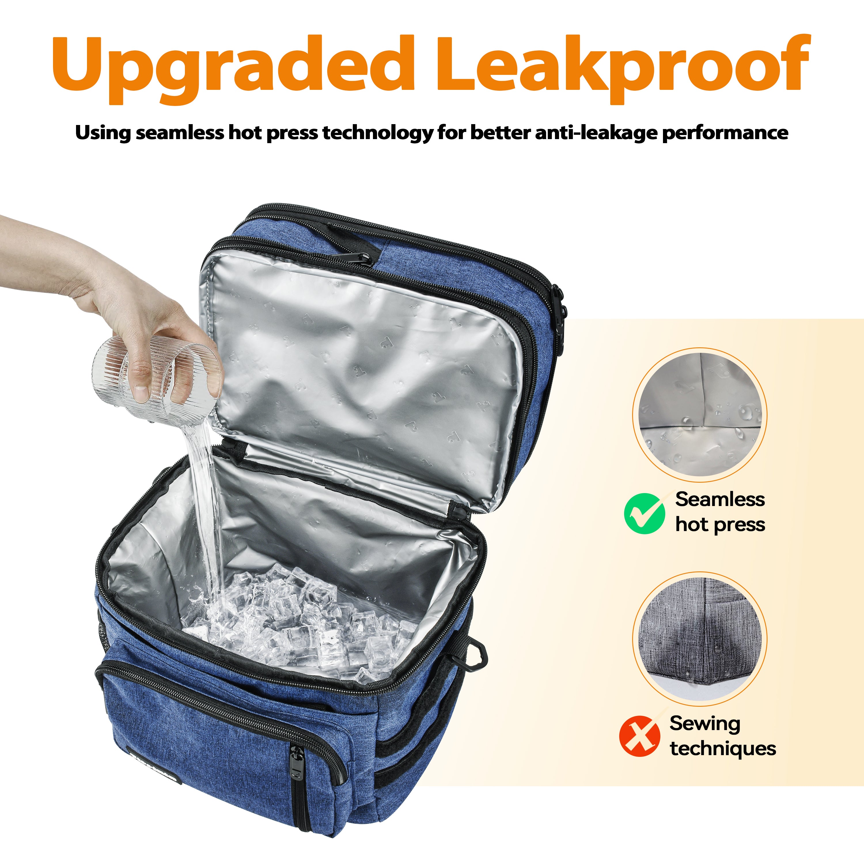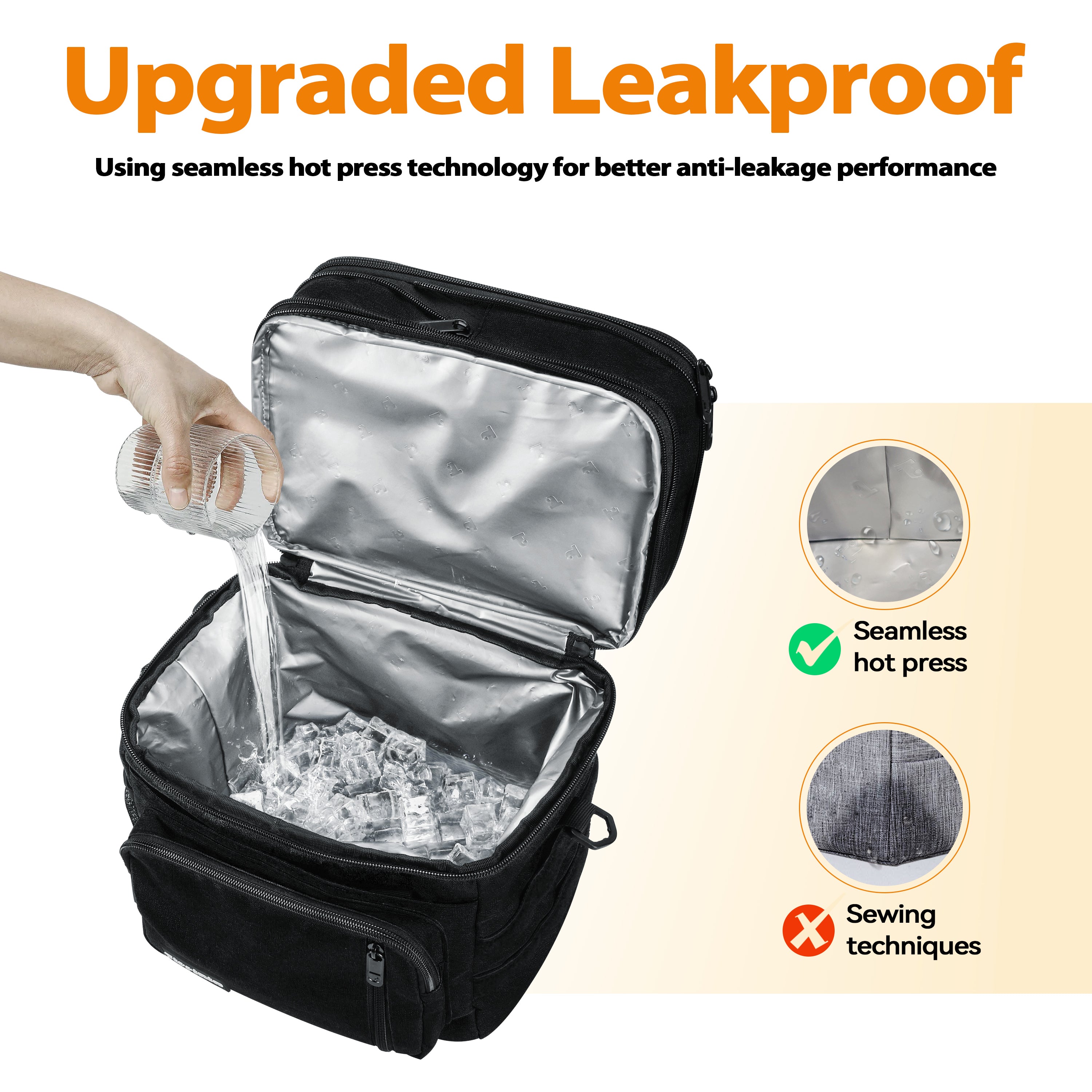 Tirrinia Large Expandable Insulated Lunch Bag – the ultimate companion for your on-the-go dining needs. Engineered with seamless hot press technology, this lunch bag ensures leak-proof performance, allowing you to transport your favorite meals and snacks with confidence. It features a large capacity and dual compartment design to comfortably store lunches, snacks and drinks while keeping them fresh and leak-free. Its spacious interior is designed to accommodate all your culinary essentials, while multiple pockets offer convenient storage for utensils, napkins, and more.
