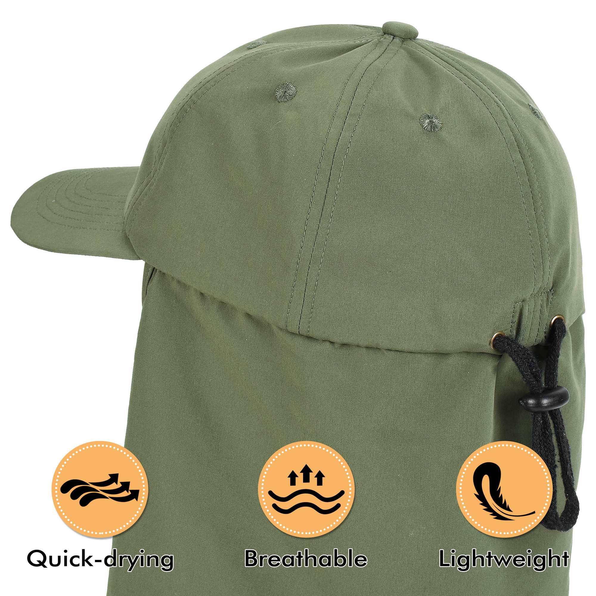 - 2-in-1 Versatility: Removable neck flap lets you switch between a full sun protection hat with flap or a trendy baseball cap – roll up and hide the flap for a fun, fashionable look to suit your needs.